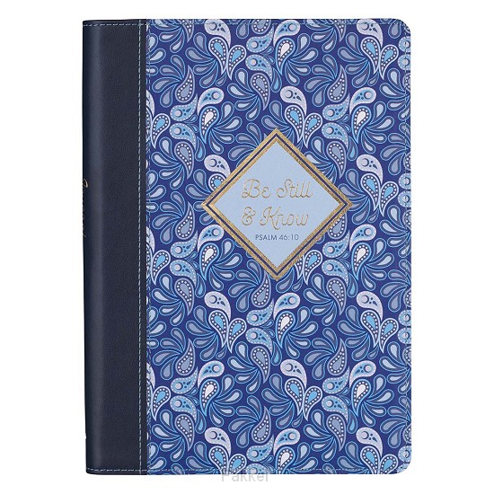 At times, life seems to fly past us at a rocket pace. The Be Still & Know Blue Paisley Quarter-bound Faux Leather Classic Journal is a great place to record all the important things and thoughts that happen in your day. When memories, plans, fears, or a never-ending to-do list seem all-consuming, take a moment to experience the peace and stillness only God can provide. Better yet, he has promised us this peace when we rest in his care.