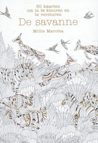 Marotta’s prachtige illustraties dagen je uit om deze ansichtkaarten zo mooi mogelijk in te kleuren en te versturen. Vul de tekeningen aan door fijnen lijnen toe te voegen of geef juist wat extra kleur aan het uitgestrekte graslandschap van de savannes van Afrika, Azië, Zuid-Amerika en Australië. Verlies jezelf in de prachtige tekeningen van de natuurwonderen van dit unieke landschap, van acaciabomen tot reuzenmiereneters, kangoeroes en zebra’s.